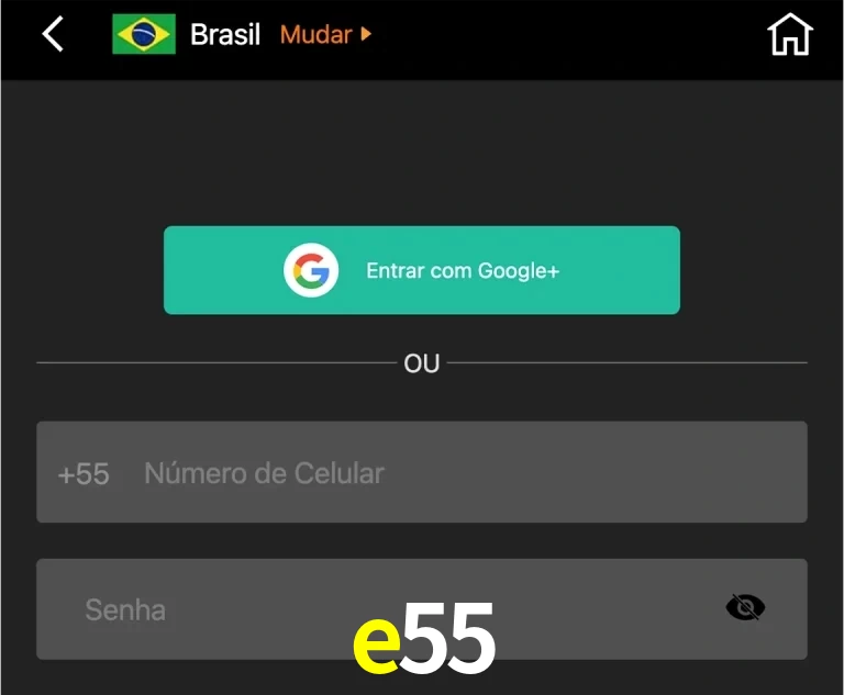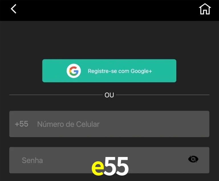 Você também pode se registrar no site do e55 usando seu perfil do Google. Isso permite que você não precise digitar seu telefone e senha, o que acelera o processo de registro.